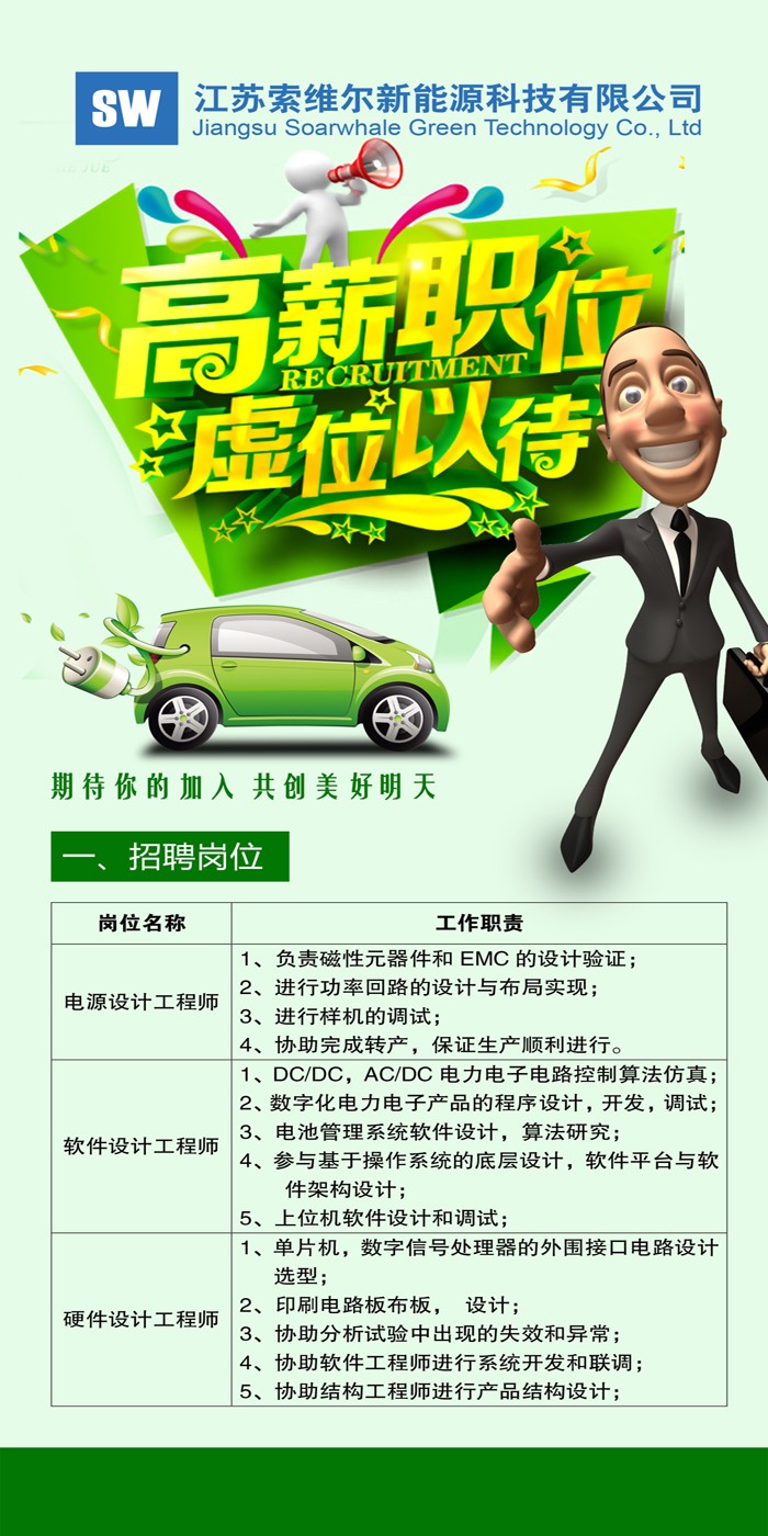 3月上旬,索維爾全資子公司——上海藍(lán)驅(qū)新能源科技有限公司啟動(dòng)2017春季校招工作,走進(jìn)同濟(jì)、上海理工、浙大、復(fù)旦等知名院校開展校園宣講和招聘活動(dòng)。主要招聘崗位是電源設(shè)計(jì)工程師、軟件設(shè)計(jì)工程師和硬件設(shè)計(jì)工程師。