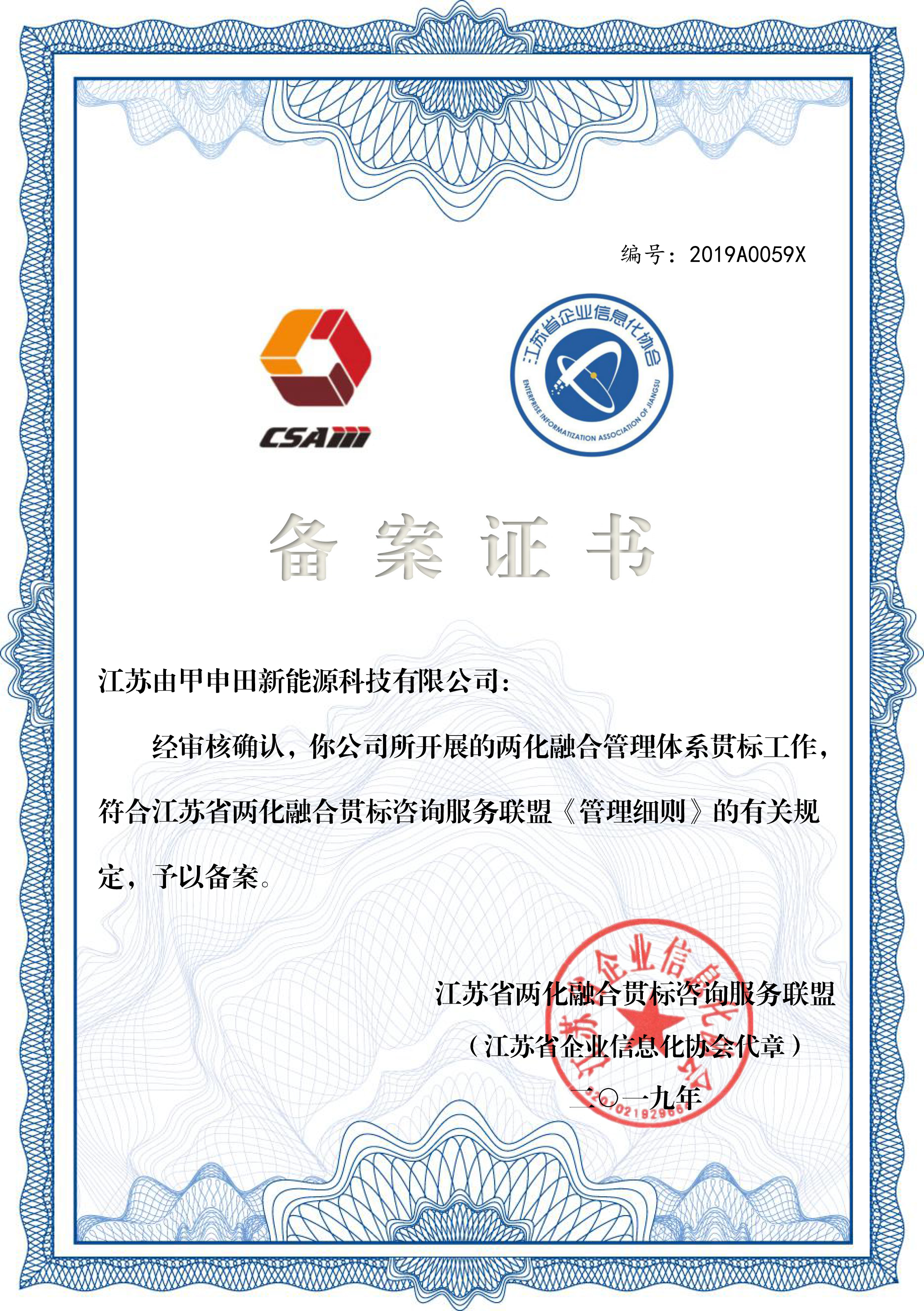 由甲申田两化融合备案证