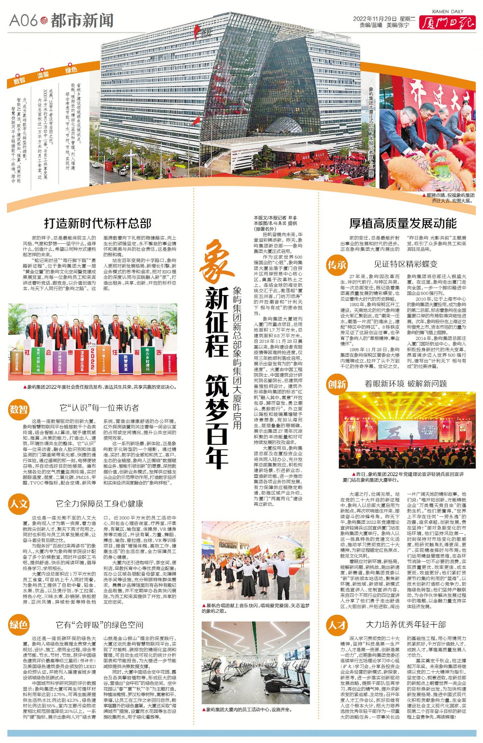 【廈門日報(bào)】象新征程 筑夢百年 象嶼集團(tuán)新總部象嶼集團(tuán)大廈昨啟用