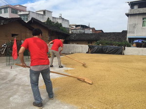 曬谷場的大姐說,曬谷并不簡單,遇上天氣不好要反復收回,再次拆包、攤平、晾曬。曬谷揚起的灰色還容易造成皮膚過敏。我嘗試了幾下已經感受到腰部手臂的負荷。農活很艱苦,但曬谷大姐仍是每日不厭其煩地勞作,微笑面對自己的生活。