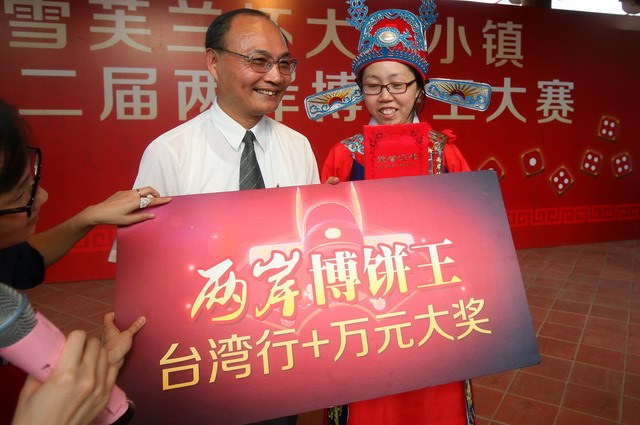 10月6日下午,首次由臺商冠名的“雪芙蘭杯大嶝小鎮(zhèn)第二屆兩岸博餅王大賽”在千人同臺爭奪“兩岸博餅王”的歡呼和吶喊聲中隆重舉行,這也意味著持續(xù)一個月圍繞“中秋博餅”和“購物”展開的第二屆大嶝小鎮(zhèn)中秋嘉年華暨第三屆兩岸特色旅游購物節(jié)活動落下帷幕,女狀元為廈門市民譚晶,她笑稱博餅的譚晶比唱歌的譚晶還幸運,從網(wǎng)絡博到現(xiàn)場,一路“過關斬將”奪得兩岸博餅王,贏得臺灣行+萬元大獎。