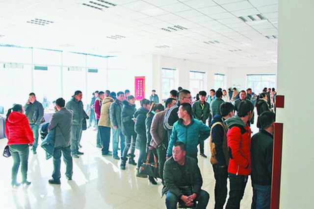綿延幾公里的大貨車分四路匯集富錦象嶼金谷農(nóng)產(chǎn)有限公司外等候送糧,警車徘徊在各個(gè)路口維持秩序;飛機(jī)場(chǎng)地般寬闊平坦的院內(nèi)廣場(chǎng)上,稱重、檢驗(yàn)、卸糧、烘干等一系列交糧工作有條不紊地進(jìn)行,一座座大糧倉(cāng)按編號(hào)排列等待蓄糧;檢驗(yàn)檢測(cè)大廳里,工作人員各司其職,認(rèn)真工作。透過(guò)玻璃墻,農(nóng)民在休息室里一目了然。一張告示“請(qǐng)水稻客戶當(dāng)天結(jié)算,換取發(fā)票,否則無(wú)法打款”提醒往來(lái)農(nóng)民打款須知。晚17:00,免費(fèi)餐廳廚房大鍋菜葷素搭配,品類齊全,白開(kāi)水供應(yīng)充足。