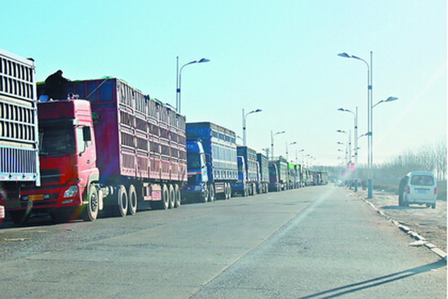 富錦象嶼金谷農(nóng)產(chǎn)門(mén)外排隊(duì)等候的送糧車