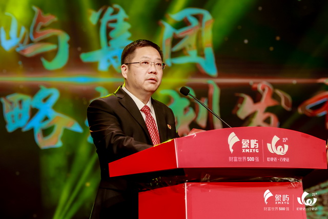 象嶼集團(tuán)黨委書記、董事長(zhǎng)張水利以《二十五載同風(fēng)雨,逐夢(mèng)百年賦新章》為題致辭。