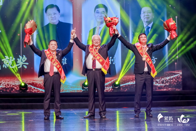 ▲已故象嶼集團(tuán)原黨委書記、董事長(zhǎng)吳世濱的家屬代領(lǐng)終身成就獎(jiǎng)