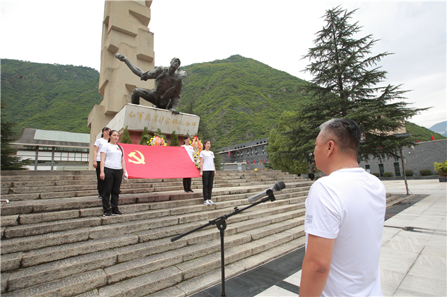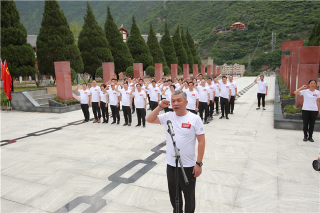 重溫入黨誓詞,牢記入黨初心。在紅軍飛奪瀘定橋紀(jì)念碑前,在鮮紅的黨旗下,劉志宏書記帶領(lǐng)全體黨員舉起右拳,神情莊重、精神飽滿,齊聲重溫入黨誓詞,感受涌動的初心,激發(fā)前行的動力。鏗鏘有力的宣誓聲響徹現(xiàn)場,宣示著“挑戰(zhàn)之旅”廣大黨員堅定不移的政治信念和矢志奮斗的堅強決心。