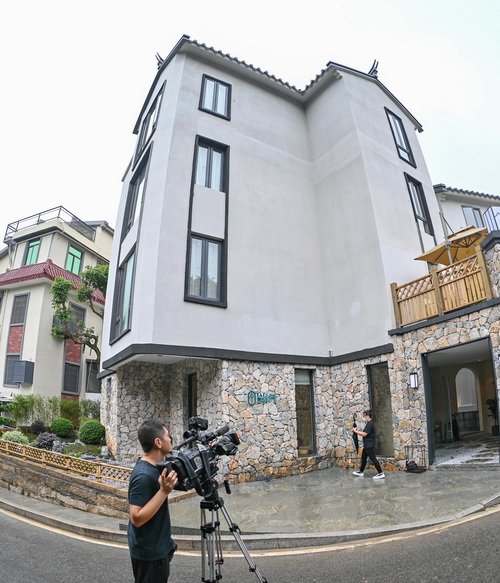 媒體記者拍攝東坪山民宿改造項(xiàng)目。