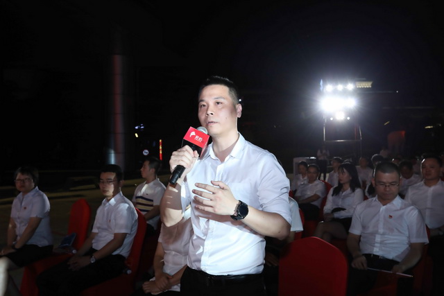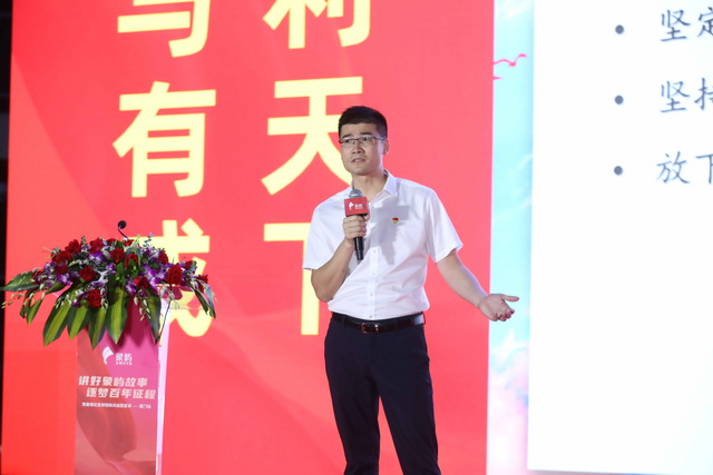 ▲福建象嶼房地產(chǎn)總經(jīng)理陳志杰帶來宣講《振奮文化精神,緊抓發(fā)展機遇,以實干篤定前行》