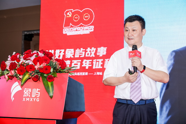 ▲象嶼地產(chǎn)黨委委員、紀委書記,象嶼商發(fā)聯(lián)合黨支部書記、總經(jīng)理鄭毅龍帶來宣講《以草根精神成長為參天大樹》