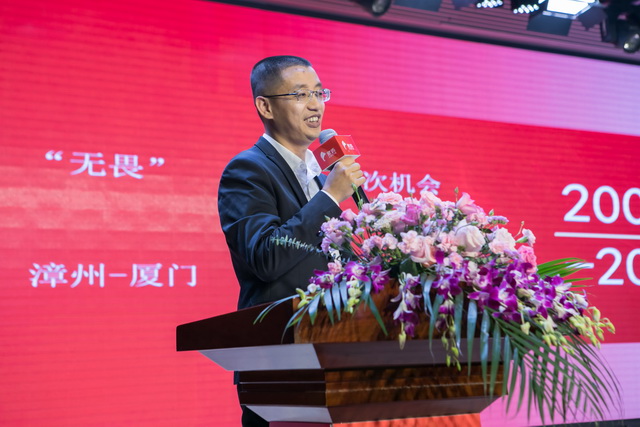 ▲福建象嶼房地產(chǎn)總經(jīng)理陳志杰帶來宣講《振奮文化精神,緊抓發(fā)展機遇,以實干篤定前行》