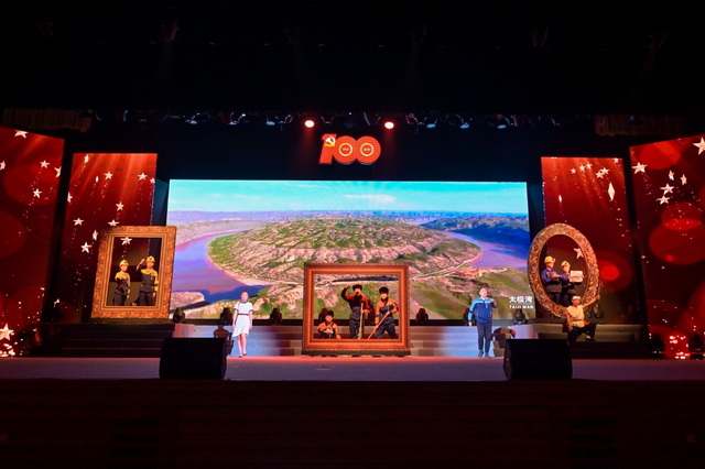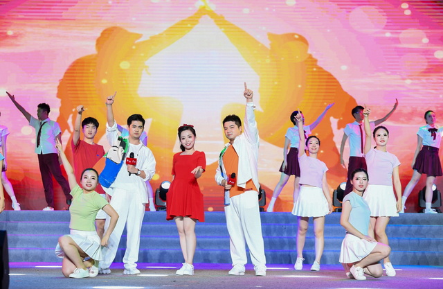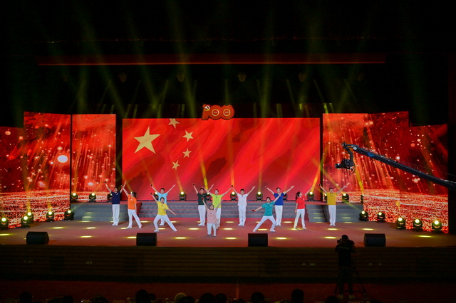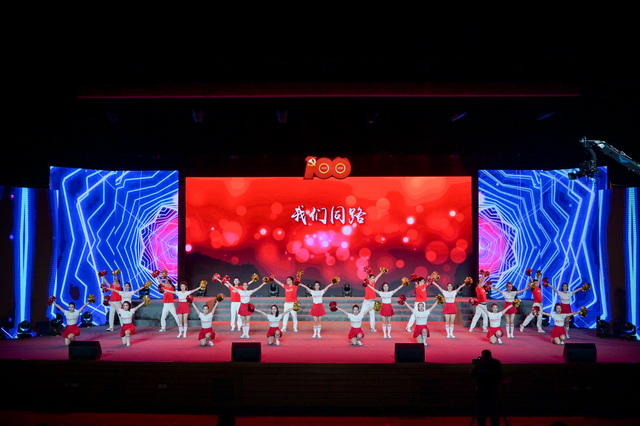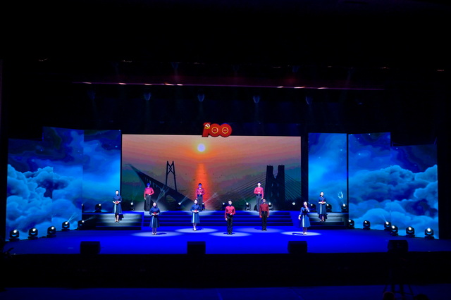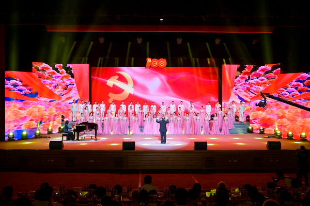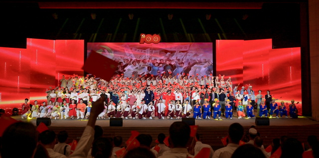 “迎風(fēng)飄揚(yáng)的旗,我們舉著你,舉起你就是舉起我們自己。迎風(fēng)飄揚(yáng)的旗,我們跟著你,跟著你就是跟著信仰堅(jiān)定不移。”合唱《迎風(fēng)飄揚(yáng)的旗》,拉開(kāi)展演活動(dòng)的序幕。這面鐮刀錘頭的旗幟穿越百年,卷走黑夜迎來(lái)晨曦,引領(lǐng)國(guó)家富強(qiáng)、民族復(fù)興、人民幸福。