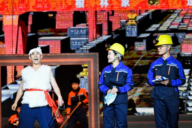 ▲象嶼海裝帶來(lái)歌舞《咱們工人有力量》