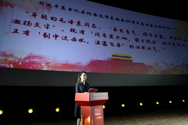 ▲廈門萬舜文化產(chǎn)業(yè)投資發(fā)展有限公司張君雅帶來《志當(dāng)存高遠(yuǎn)》——青年毛澤東事跡分享