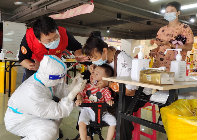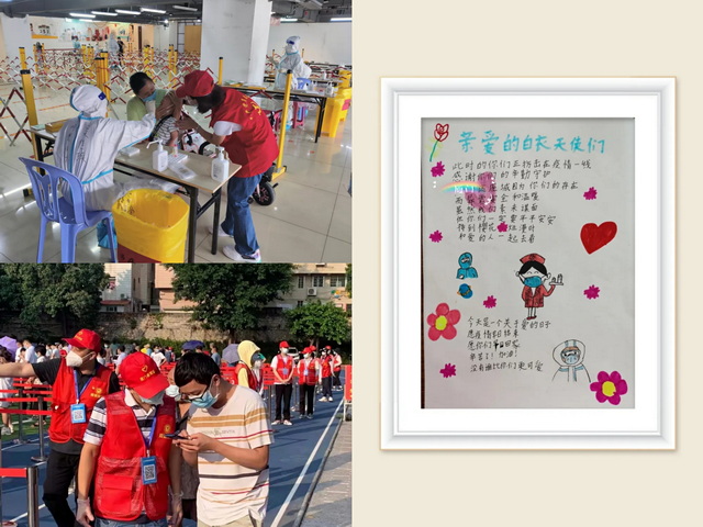 來自象嶼速傳黨辦的禇穎與她愛人齊上陣,兩人錯開時間進行志愿服務(wù),一人在外幫助市民進行核酸檢測,一人在家照顧孩子,既顧好“小家”也顧著“大家”。